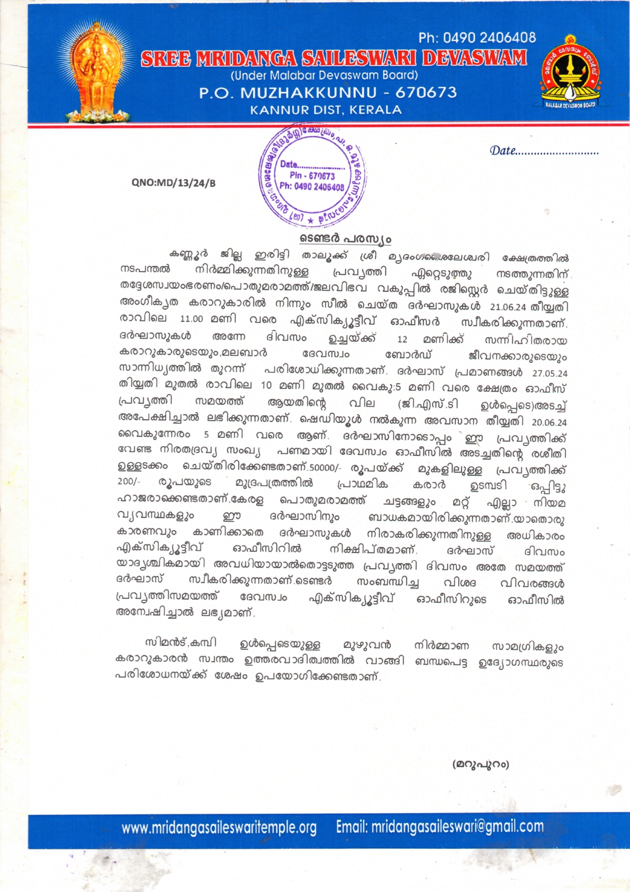 TENDER NOTIFICATION